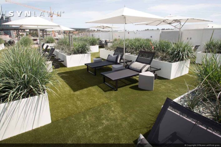 One of the truly great things about our artificial grass is its versatility. There is seemingly no end to the places SYNLawn Bermuda synthetic turf makes a perfect fit, and we’re coming across more every day. Placing our artificial grass in places such as rooftops, patios and decks has allowed for the maximization of living spaces and for a surface that doesn’t experience the wear and tear or require the maintenance other surfaces do.